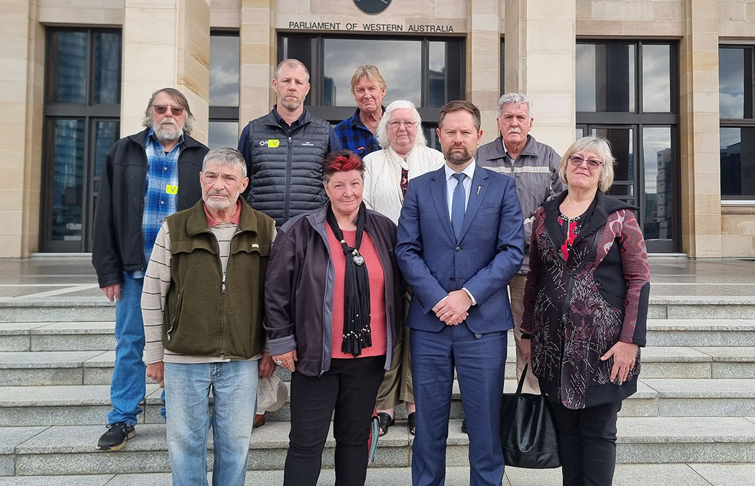 Perth Hills water crisis group members with Kalamunda MLA Adam Hort outside of parliament house on the day of the grievance being raised.