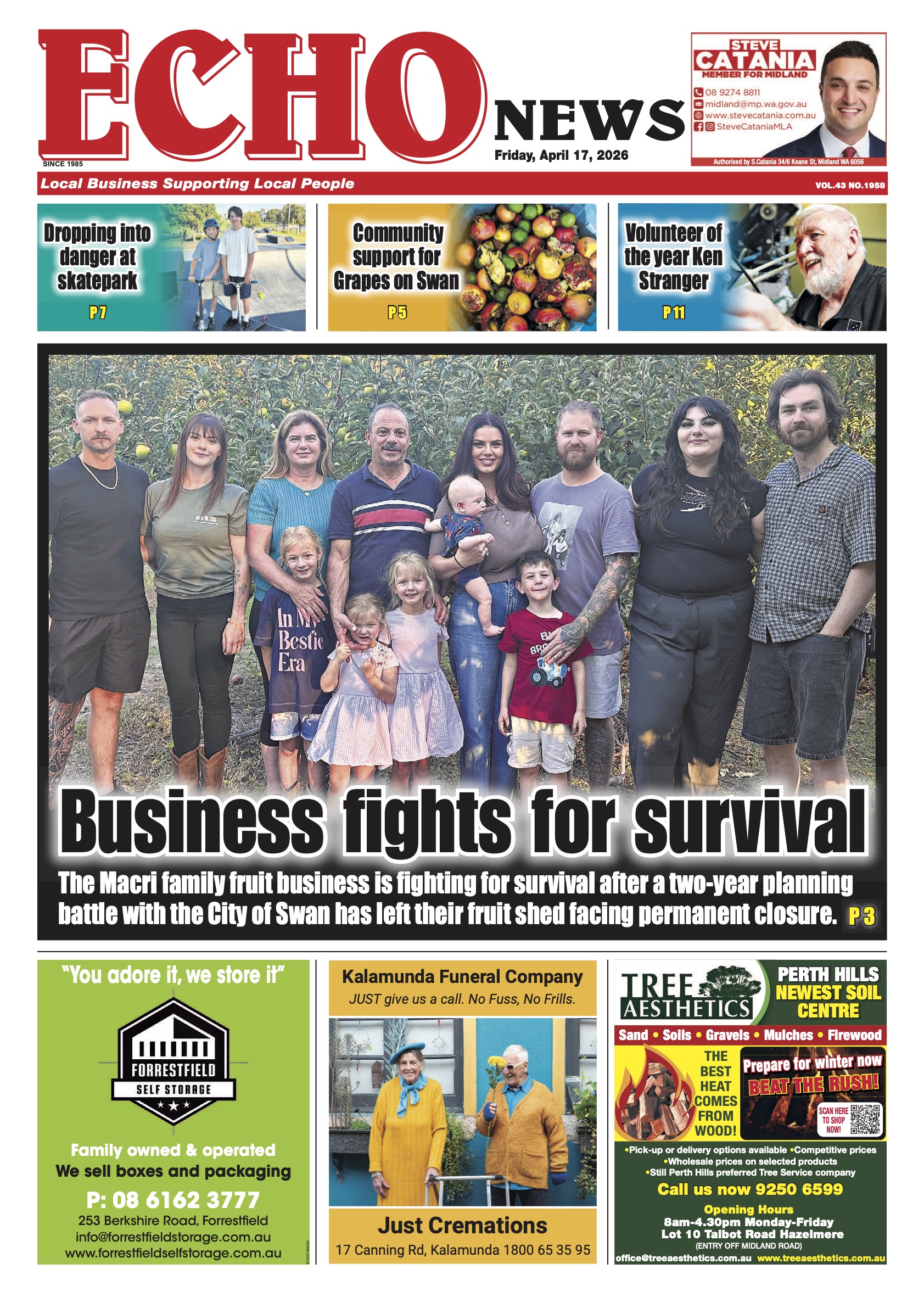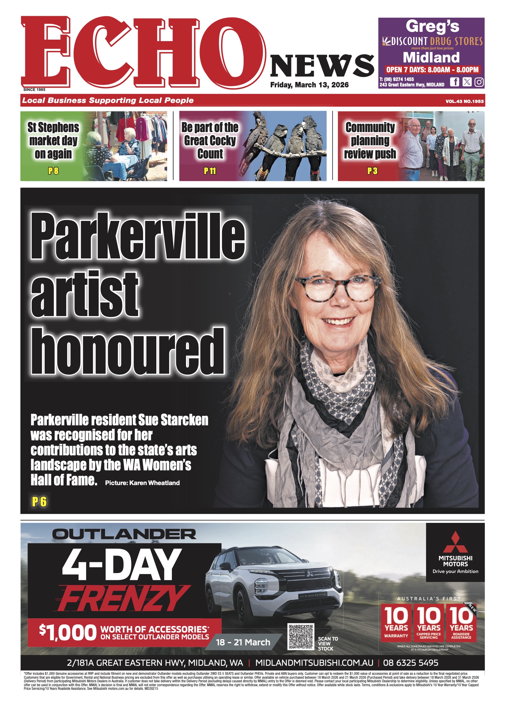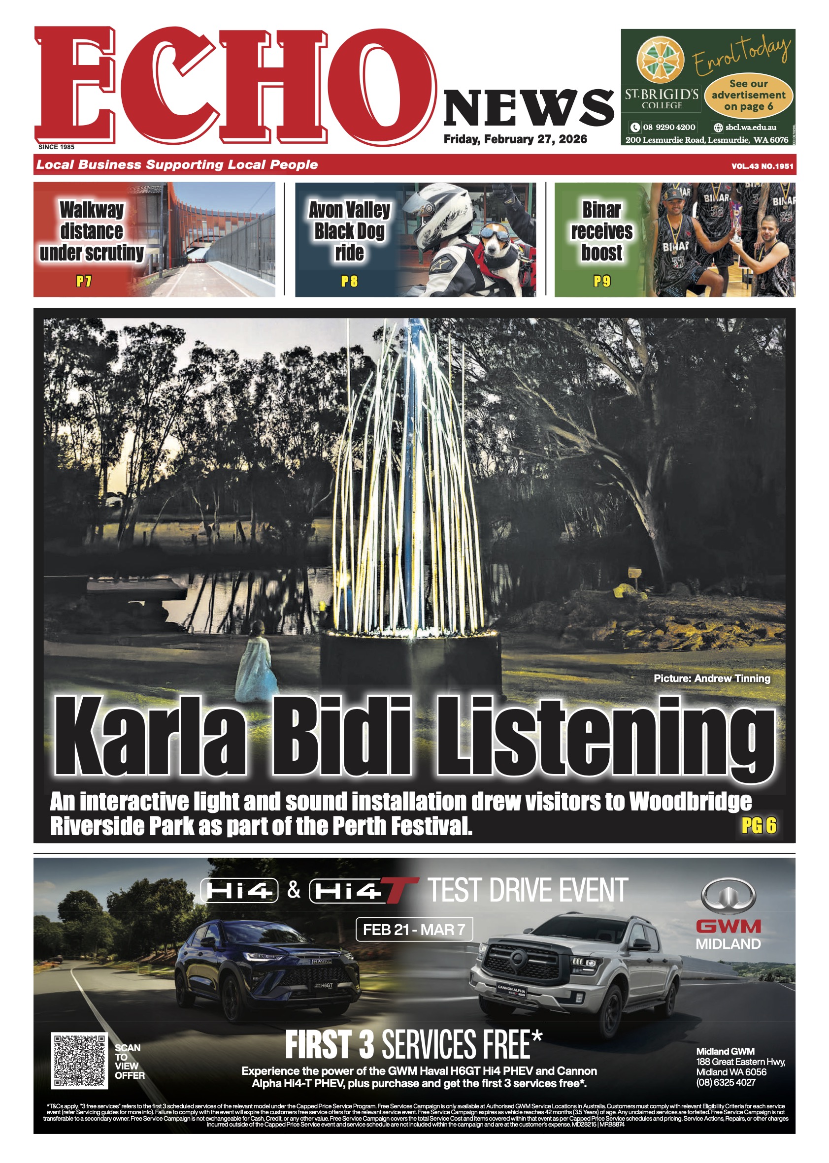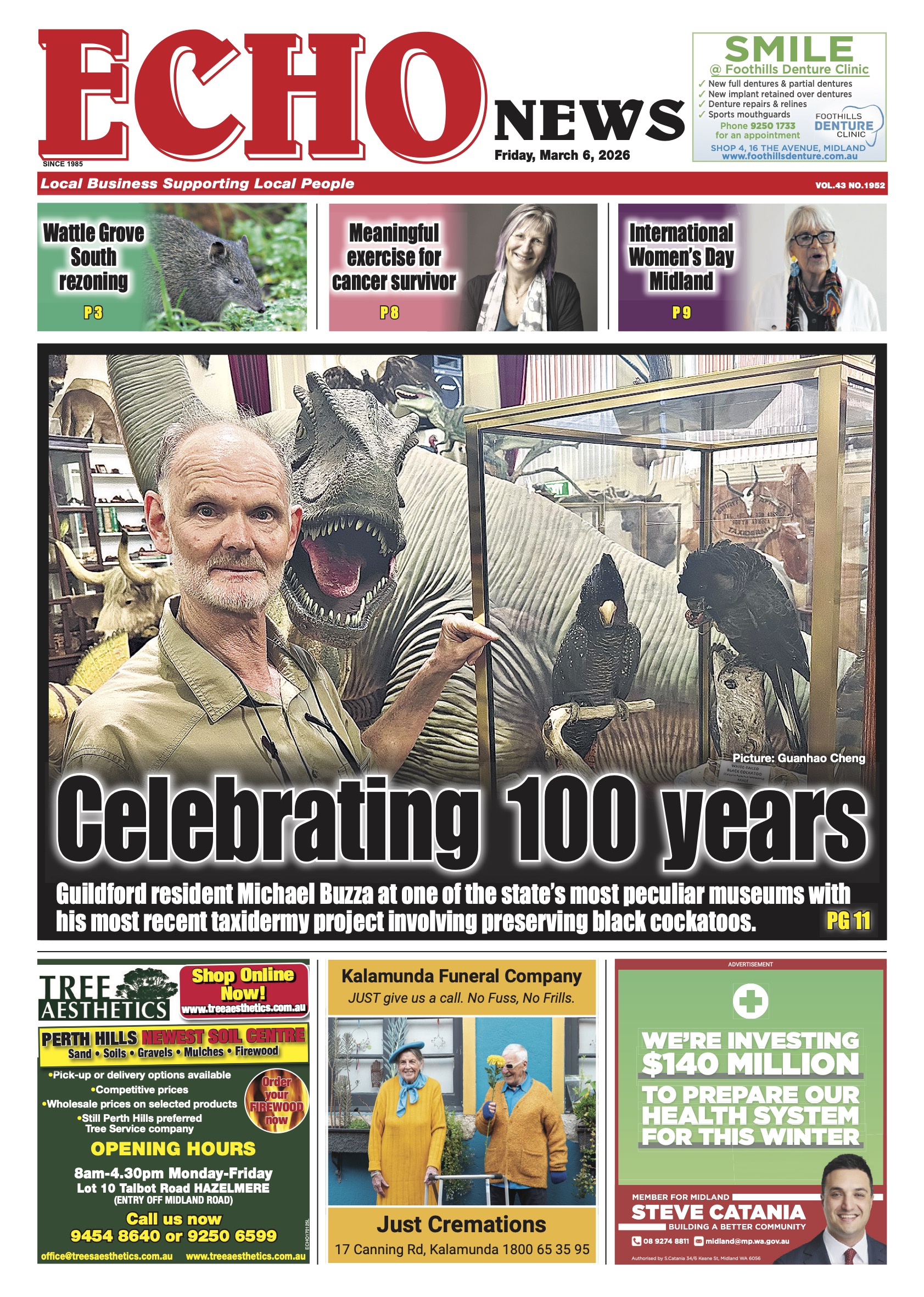 Wattle Grove South redevelopment opposed, The Vines 14-hole course sparks concern, Local governments welcome new cat laws, Farmers waiting for sheep funding, Bird flu grant for Kaarakin centre, New website streamlines healthcare access, Primary industry contribution recognised, Free exercise course for cancer sufferers, DPIRD support to Wagin Woolorama visitors, Midland celebrates International Women’s Day, Agency helps vulnerable youth, Guildford building celebrates 100 years, Farmer fined for unsafe wool press, Free concert spotlights everything Irish, Eastern suburb fighters heading to Bangkok.