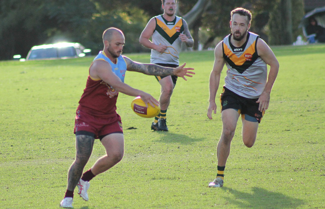 Tyler Levitt and Dylan O’loghlen were offering sound support to Kyle Tenerdi as they rebounded the ball out of their backline, Robert Di Salvio kicked accurately to Jamie Humble resulting in one of his two goals for the game.