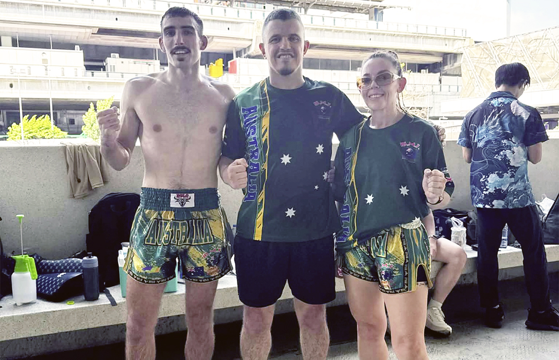 Clayton Thomas from Mundaring, shown here with umpires Nathan Mourish and Jak Wulf, was awarded the match ball.